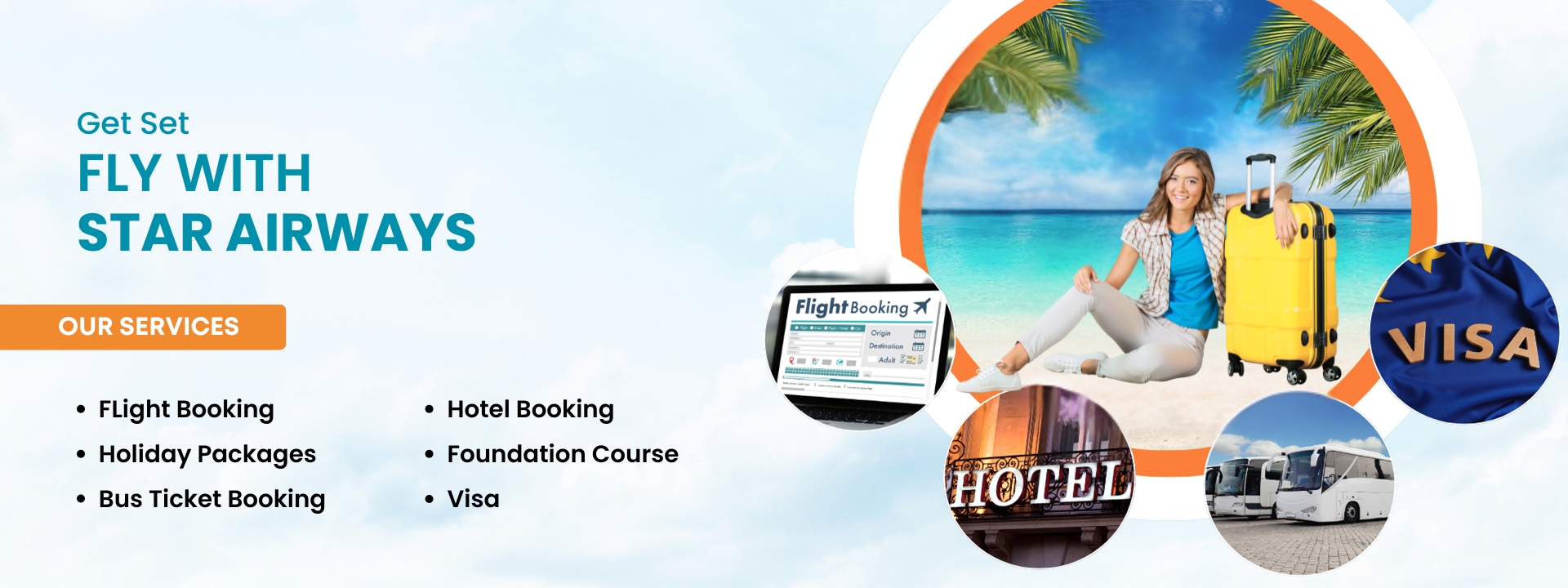 Welcome to Star Airways, your one-stop platform for all your travel essentials and personalized services. Whether you're planning a weekend getaway or a month-long adventure, we've got you covered with a curated selection of flights, accommodations, and activities tailored to your preferences. Our dedicated team ensures each aspect of your journey is personalized to perfection, from booking the ideal hotel to arranging bespoke travel experiences. Discover seamless travel planning and service with Star Airways.